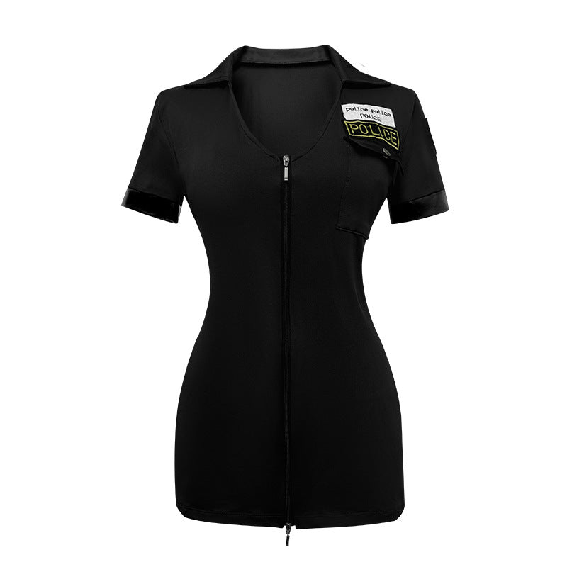 Women's Police Officer Costume - Sexy Halloween Cosplay Party Outfit with Zipper Detail