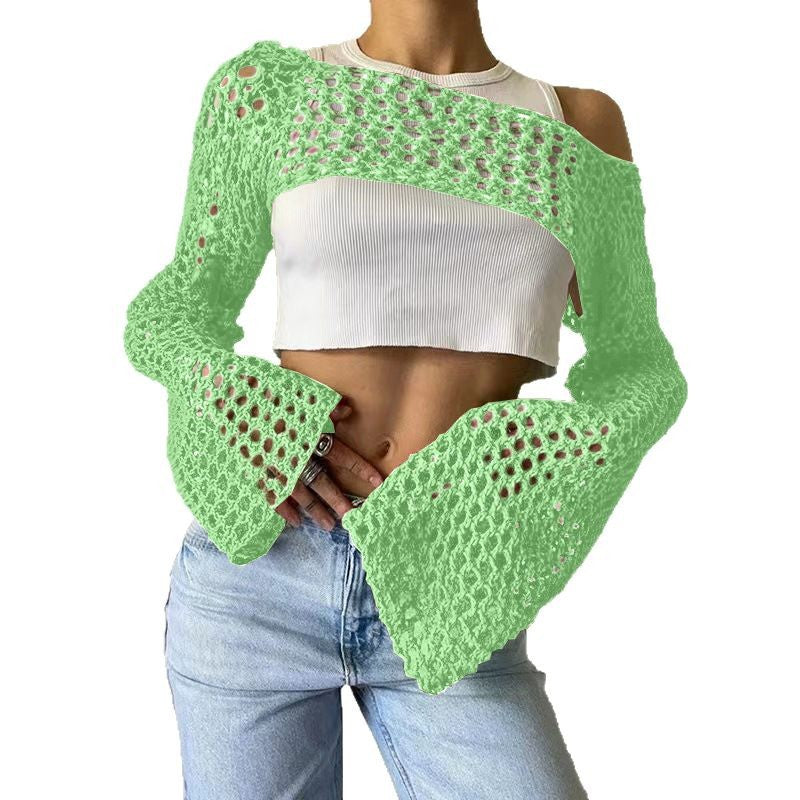 Elevate your wardrobe with this sexy hollow-knit sweater, designed for a chic and alluring look. Featuring a classic round neck and long sleeves, this solid-color knit top offers a perfect blend of comfort and style. The intricate hollow-out design adds a touch of sophistication, making it ideal for layering or wearing on its own.