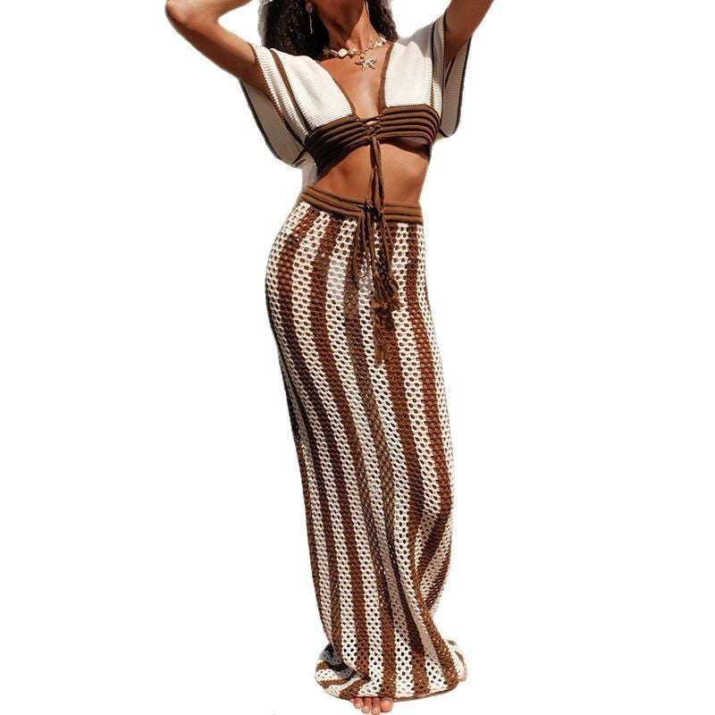 Elevate your beachwear with our Sexy Knit Bandeau Bikini Set, paired with a stylish Cover-Up Dress for effortless glam. This trendy two-piece set features a figure-hugging knit bandeau top and matching bottoms, designed to flatter your curves. The lightweight, sheer beach dress adds a chic layer, perfect for poolside lounging or seaside strolls.
