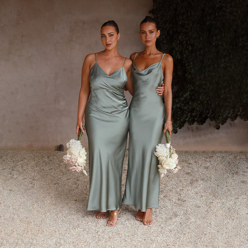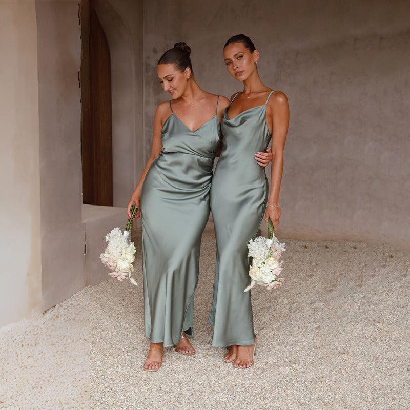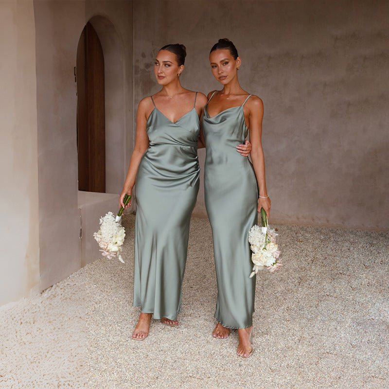 Slim Fit Deep V-Neck Sleeveless Solid Color Dress – Urban Fashion