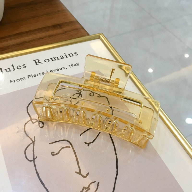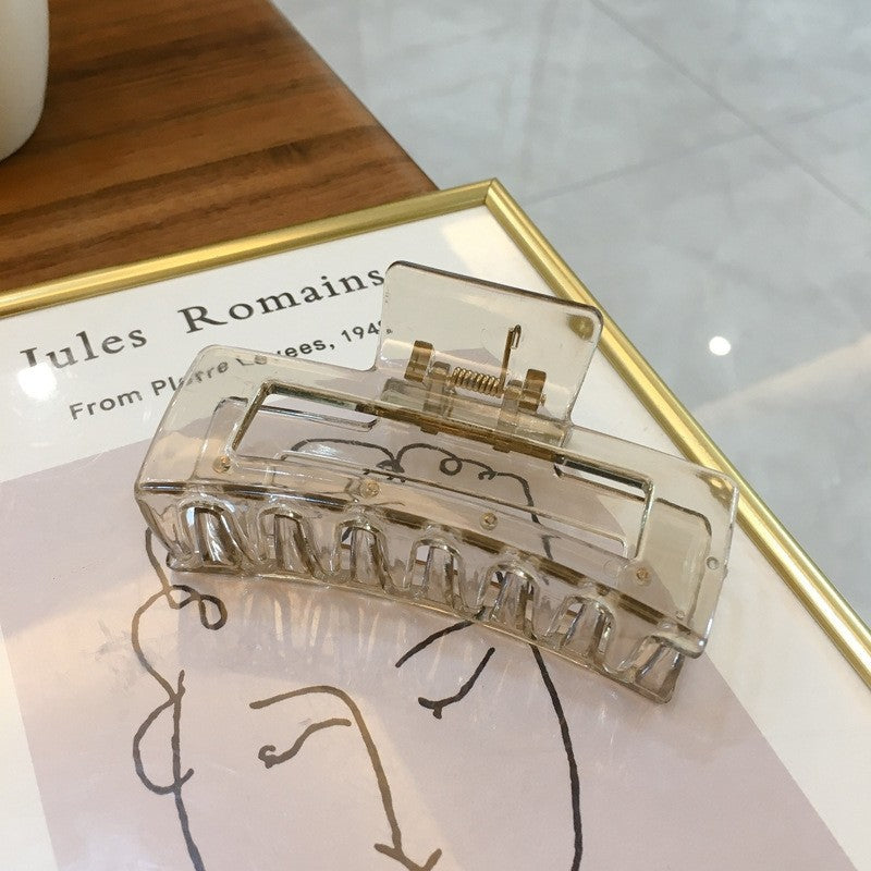 1. The Simple Claw Clip is a one-piece grained plastic hair accessory.