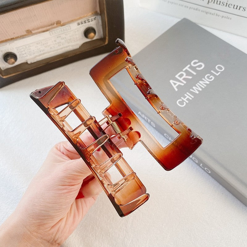1. This is a claw clip crafted from a unique tie-dye fabric. providing an eye-catching look that can easily bring an outfit together.