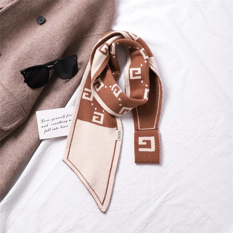 Elevate your style with a trendy knit scarf featuring a charming floral print. Perfect for going out. this scarf balances artistic retro vibes with girlish sweetness and light maturity. A stylish selection for leisure fashion in spring. autumn. or winter. it boasts a chic contrast color design in cozy acrylic.