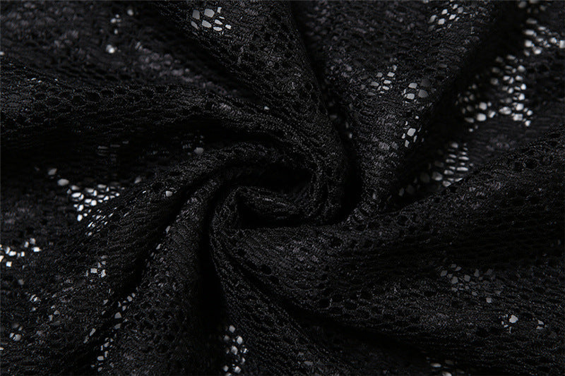 Summer Black Slim Fit High Waist V-Neck Mesh Slip Dress