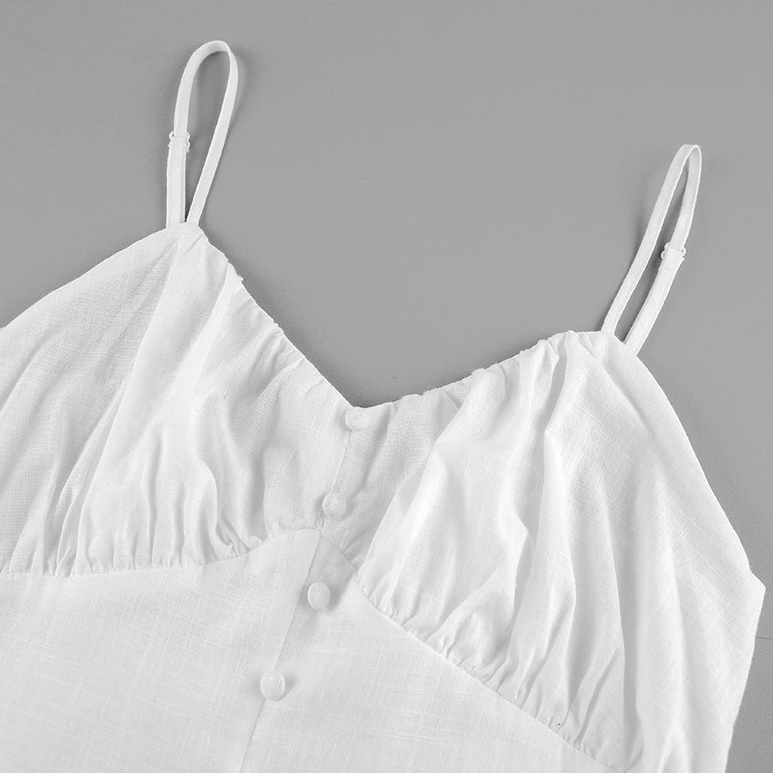 Summer Cotton Spaghetti Straps White Mini Dresses