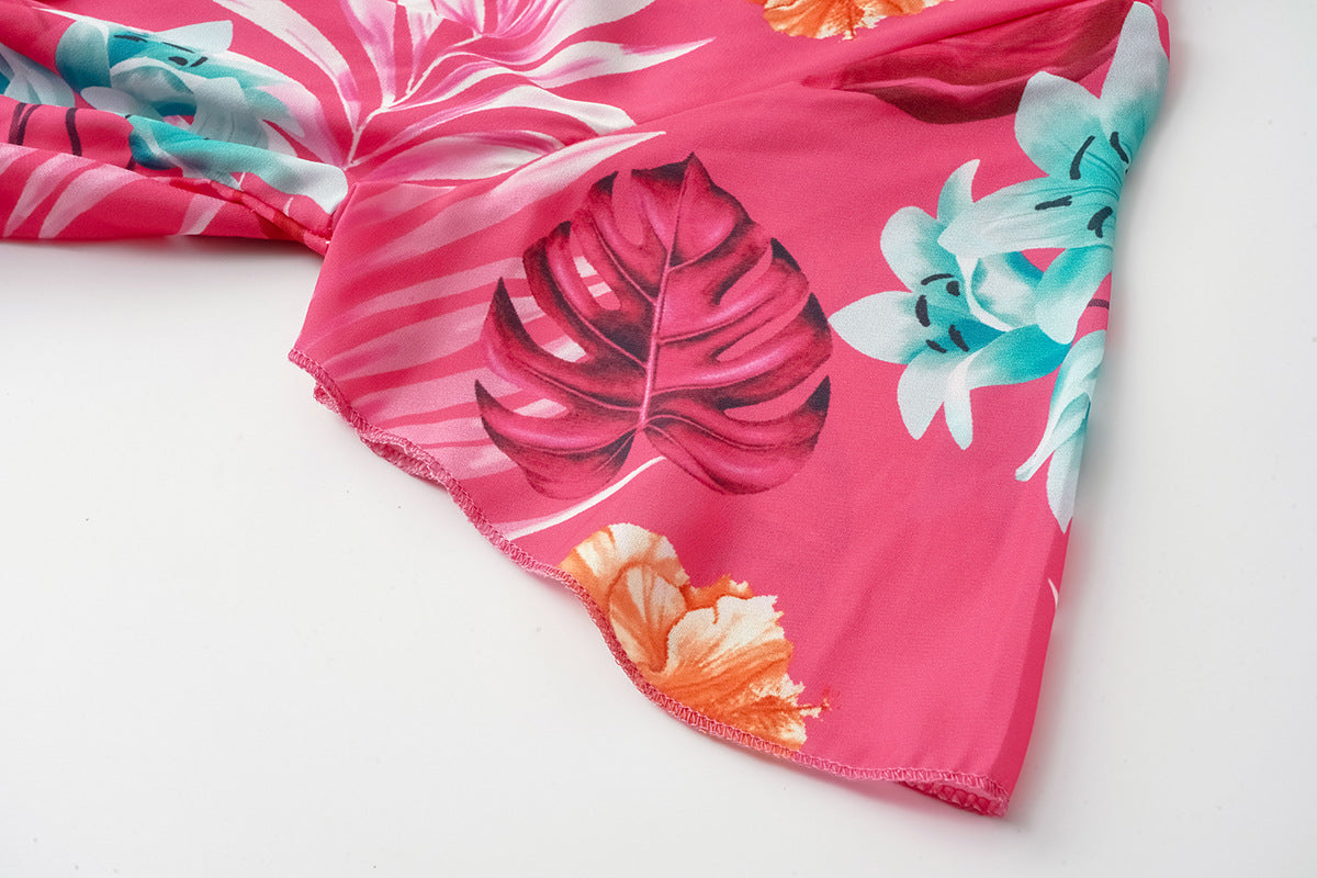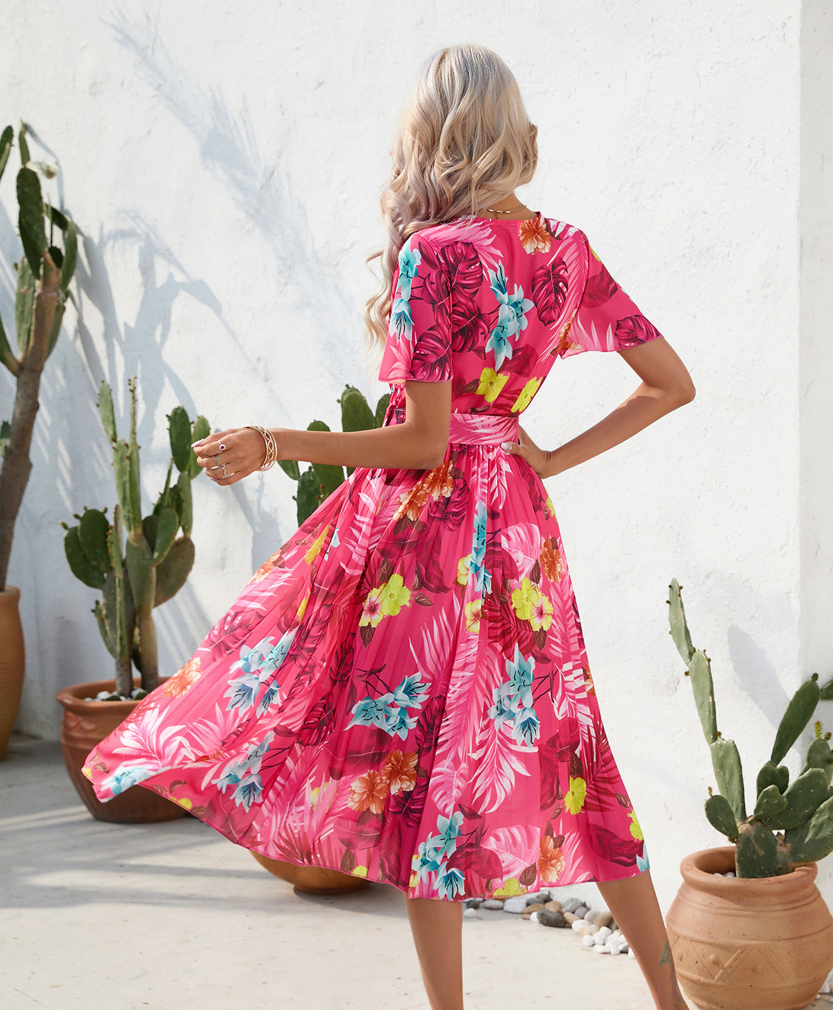 Summer Floral Print Crinkle Midi Short Sleeve Dress