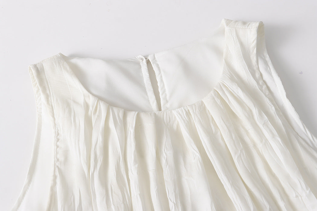 Summer Water Ripple Texture Round Neck Sleeveless Maxi Dress