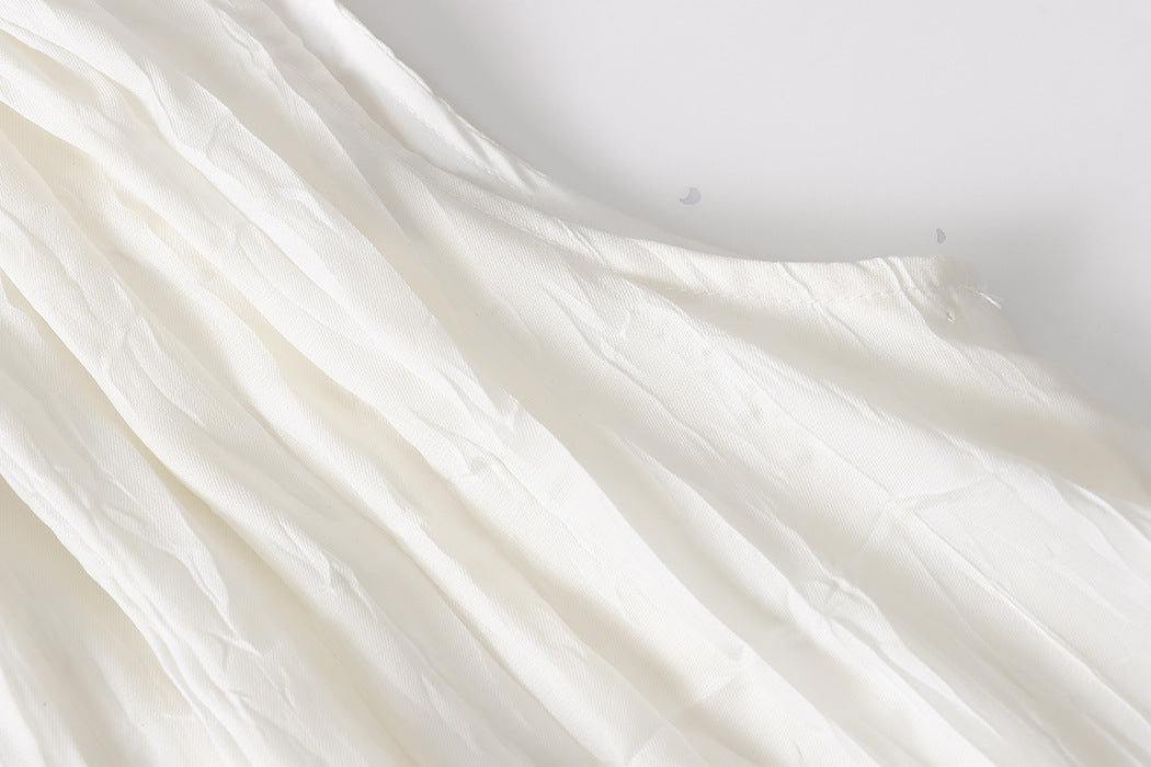 Crafted with a delicate textured fabric that mimics the gentle ripples of water, this sleeveless, round-neck maxi dress is perfect for sunny getaways and warm-weather outings. The flowing long silhouette offers a relaxed yet chic look, making it ideal for beach vacations, garden parties, or casual strolls.