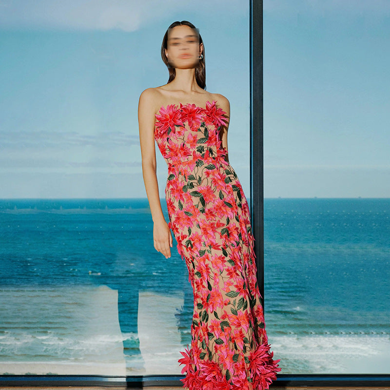Embrace timeless charm with our Floral Embroidered Corset Dress, designed for summer soirées, garden parties, and romantic evenings. This strapless silhouette features delicate 3D floral embroidery and a fitted bodice for a feminine, retro-inspired look.