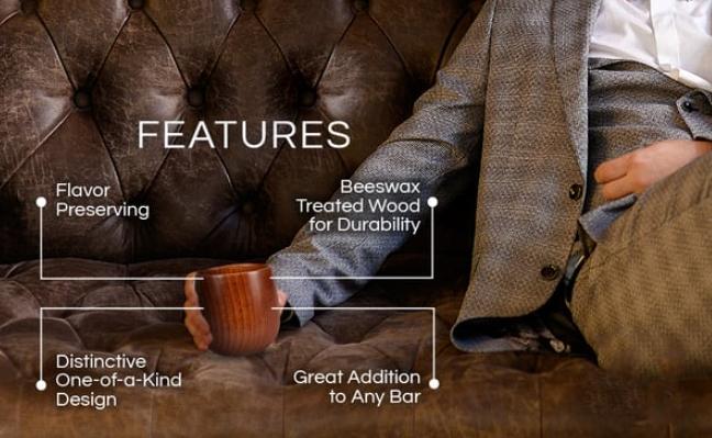 QUALITY WOOD & UNIQUE DESIGN Crafted from quality wood with a unique wood grain design and a non-tarnish finish, this cup is a statement of style and tradition.