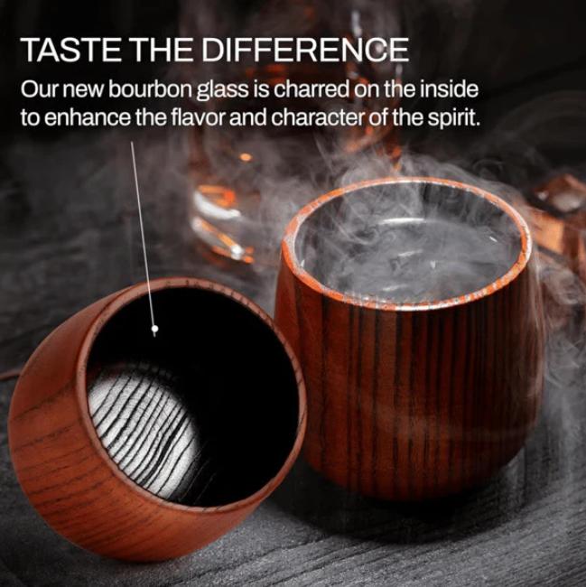 ENHANCE YOUR WHISKEY OR BOURBON Our new bourbon glass is charred on the inside to enhance the flavor and character of the spirit, bringing forward richer, smoother notes in your whiskey.