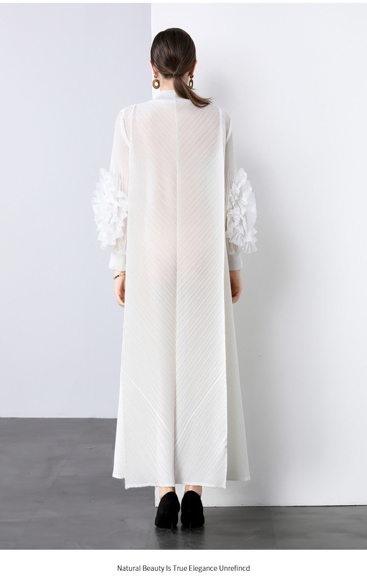 This stylish dress features a high collar and a figure-flattering, slim-fit design that's both trendy and slimming. The eye-catching three-dimensional flowers add a touch of elegance and uniqueness to the solid color fabric. Crafted with care, it combines fashion and comfort. The high collar not only gives it a sophisticated look but also provides a bit of warmth. Ideal for various occasions, whether it's a formal event or a casual outing, this dress will make you look and feel your best. Its solid color makes it easy to accessorize, while the three-dimensional flowers make it stand out from the crowd. Choose this dress to showcase your fashionable taste and feminine charm.