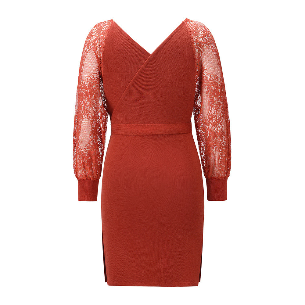Vinyl Knit Chevron Wrap Dress