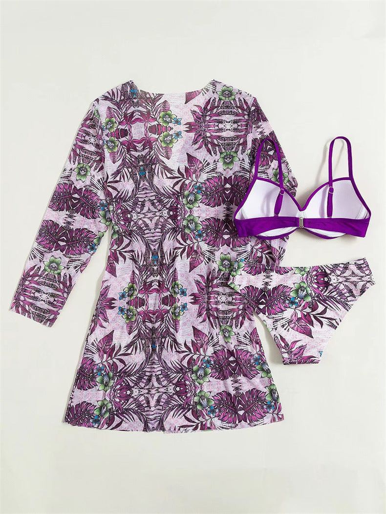 Women's 3-Piece Mesh Long Sleeve Cover-Up – Beach Bikini Set