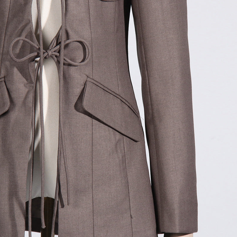 Women's Designer V-Neck Lace-Up Belted Asymmetrical Blazer Jacket