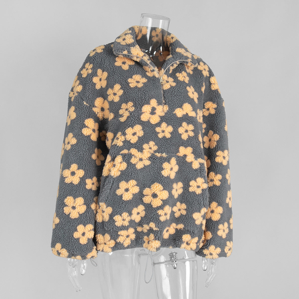 Embrace ultimate comfort and cute style with our Women's Floral Print Sherpa Hoodie. Designed for cozy days in and casual outings, this hoodie combines the plush, soft texture of high-quality sherpa fleece with a beautiful, all-over floral pattern. It's the perfect layering piece to keep you warm and looking effortlessly fashionable from fall through winter.