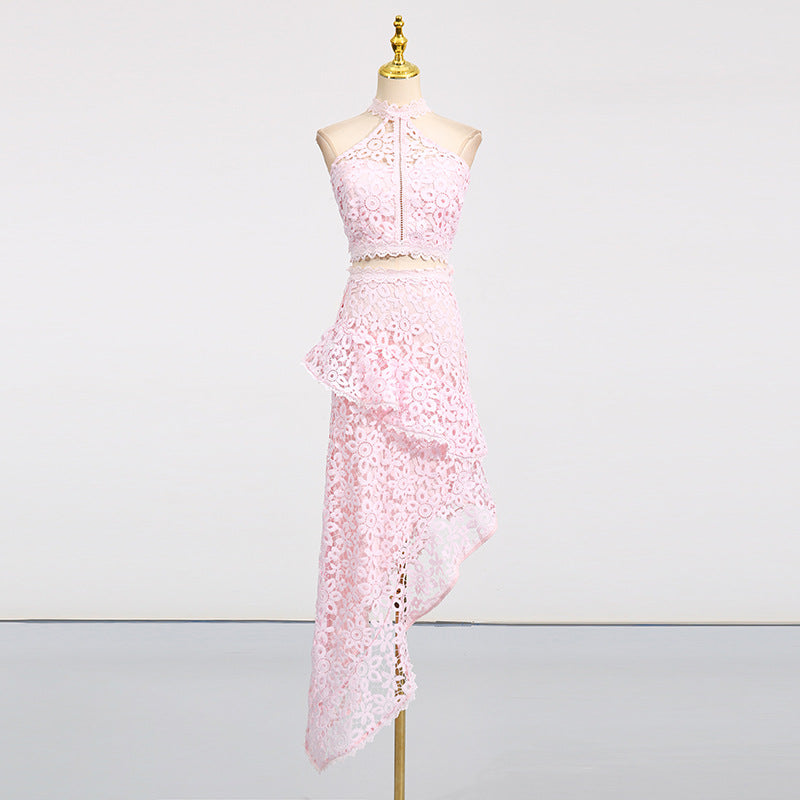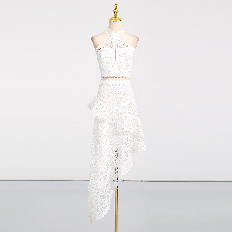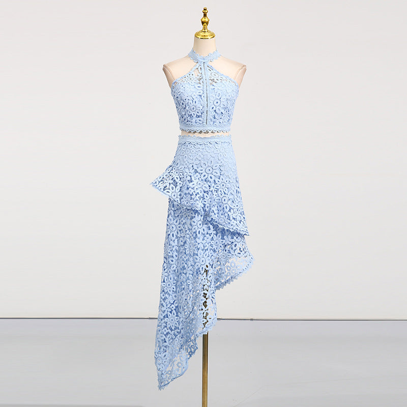 Women's Lace Sleeveless Top & Asymmetrical Skirt Set