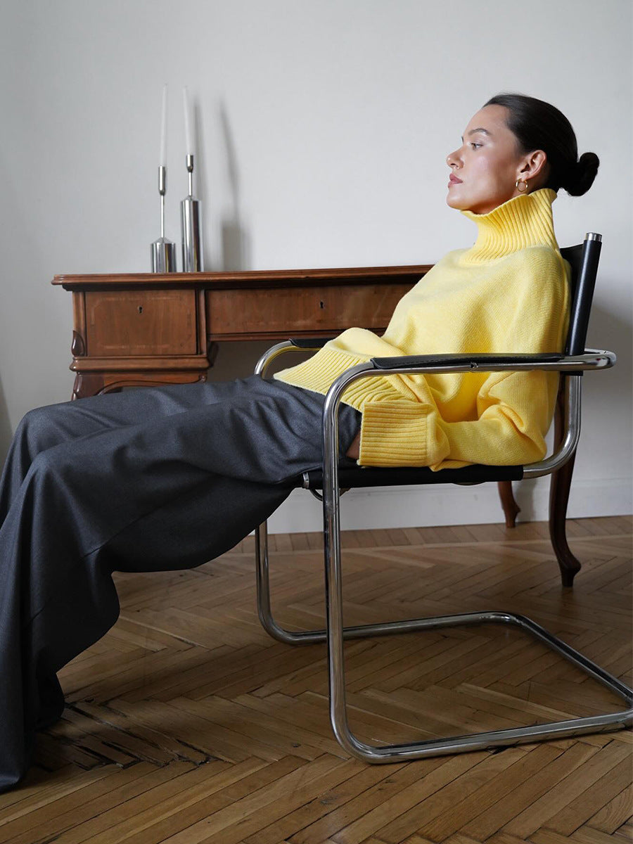 Timeless Design: A versatile solid color and high neckline create a sophisticated, minimalist look.