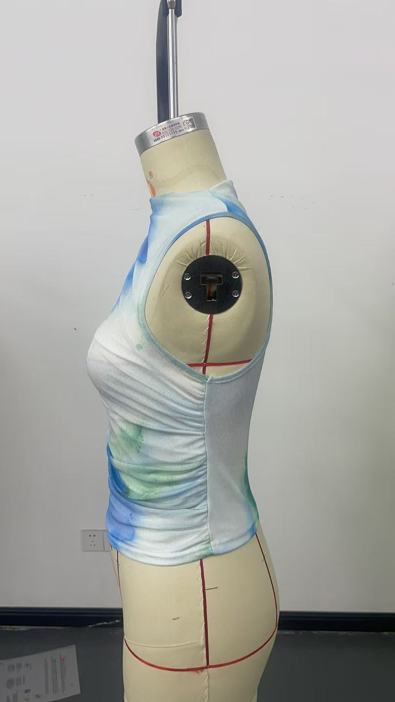 Women's Street Style Printed Mesh Vest – Trendy See-Through Sleeveless Top