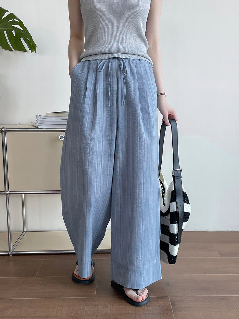 Step into laid-back elegance with our Women's Striped Drawstring Wide-Leg Pants. Designed for a relaxed, loose fit, these breezy lounge pants feature an adjustable drawstring waist and flowy wide-leg silhouette, making them a versatile staple for any casual wardrobe.
