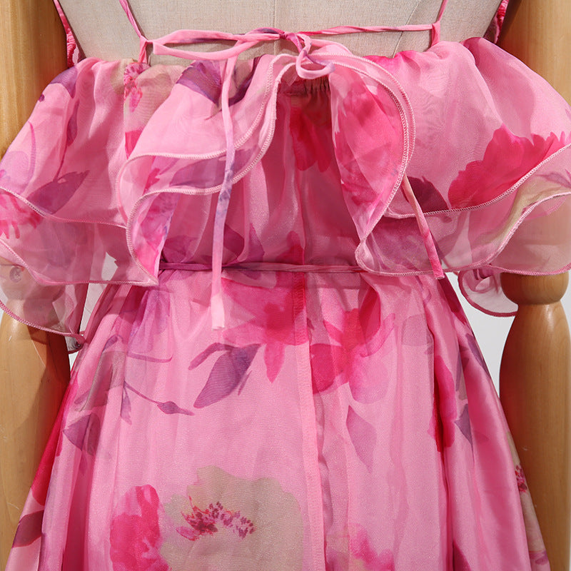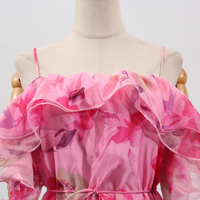 Women's Summer Dress – Fashionable Sleeveless Off-Shoulder Ruffle Hem Flowy Dress