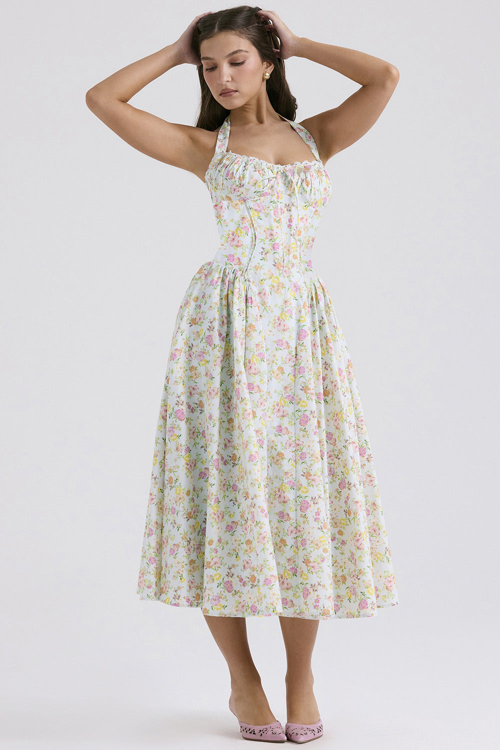 Women's Summer Floral Print Bodycon Halter Neck Maxi Dress
