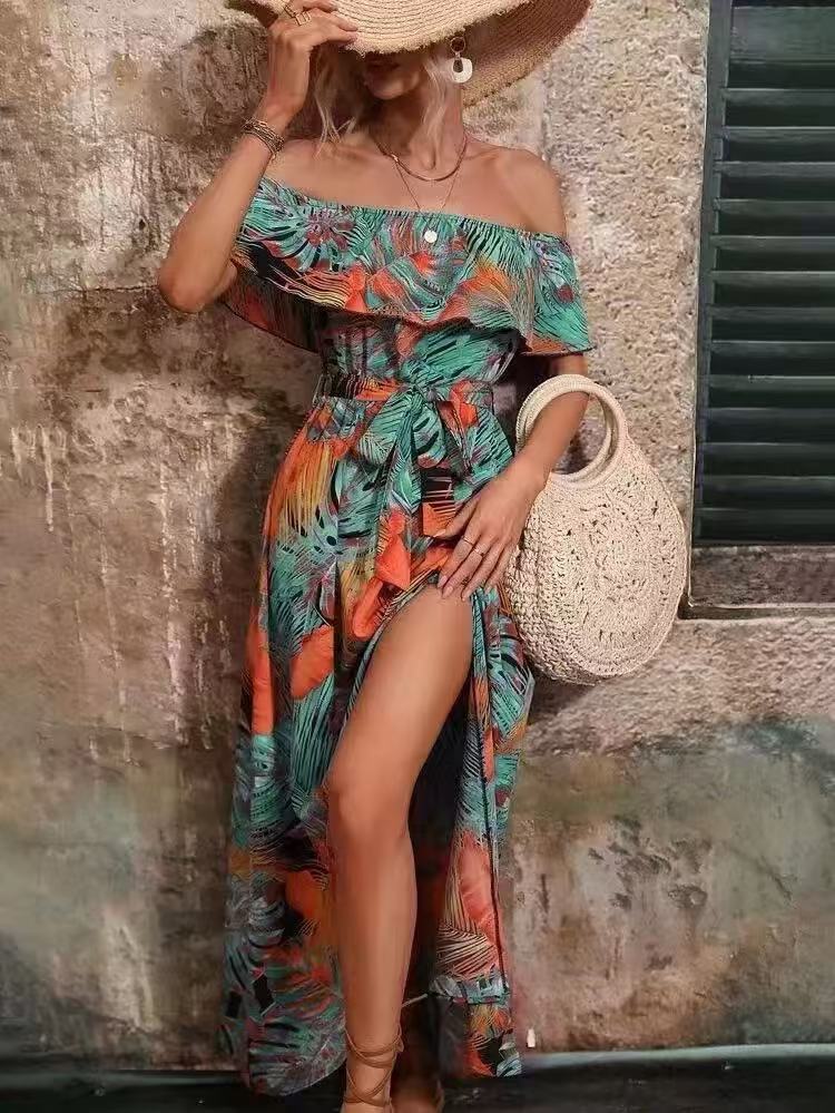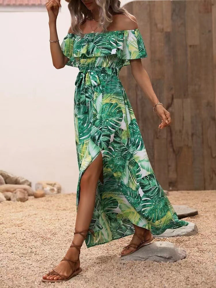 Women's Summer Off-Shoulder Ruffled Tie-Waist Dress