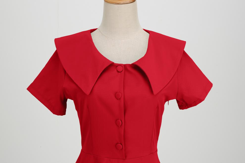Women's Summer Party Dress with Notch Lapel and Flared Hem