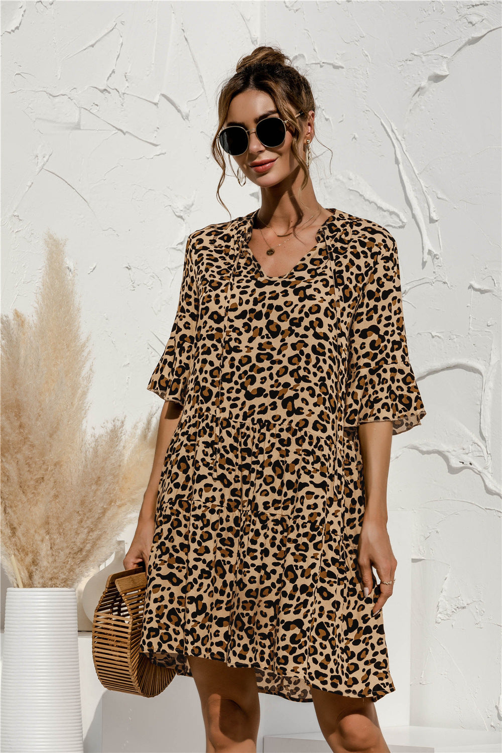 Elevate your wardrobe with this stunning contrast-panel tiered dress, designed to flatter your silhouette. Featuring a flattering V-neckline, playful flared sleeves, and a cake-layered skirt, this dress combines chic style with effortless comfort.